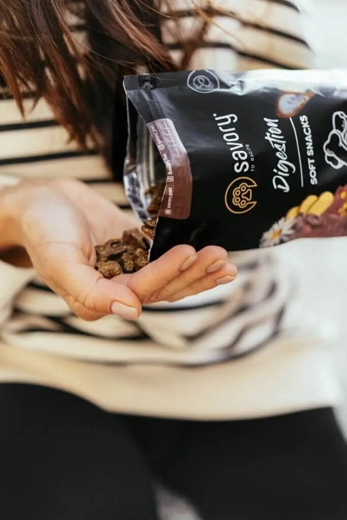 Recompense Savory pentru câini adulți pentru îmbunătățirea digestiei, cu miel și mușețel, 200 g