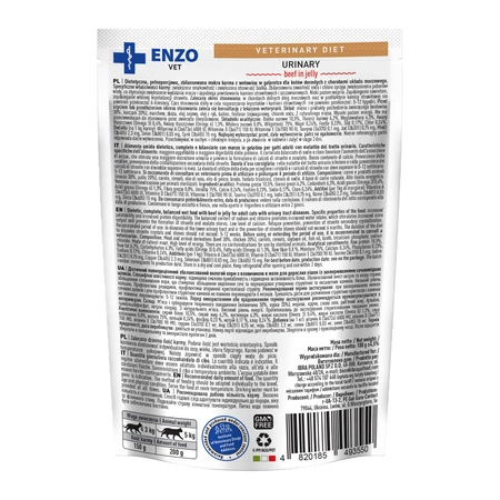 ENZO VET Urinary – hrană umedă dietetică pentru pisici, Vită în jeleu, 100 g