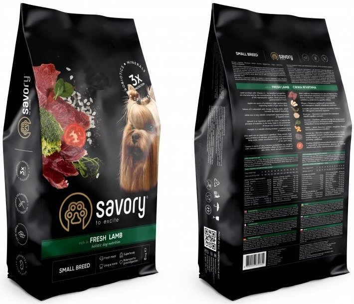 Hrană uscată completa Savory pentru câini adulți de talie mică - cu carne proaspătă de miel, 8 kg