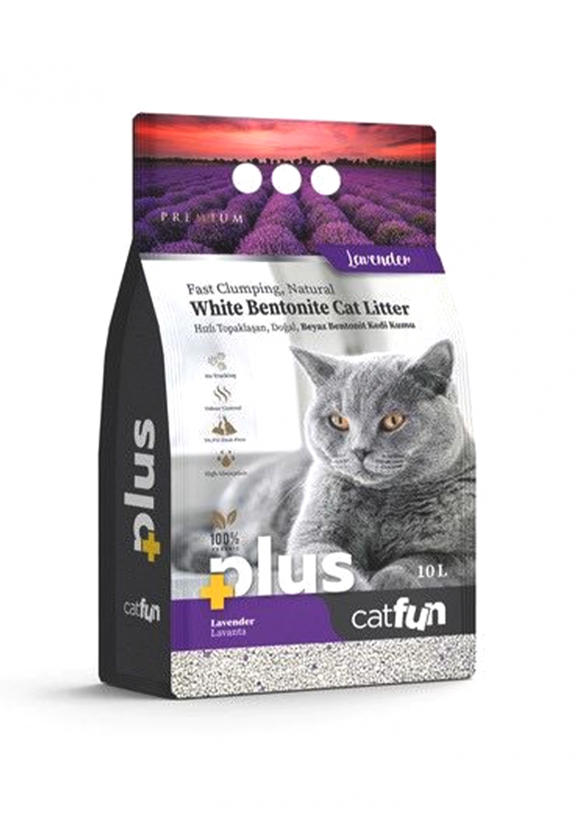 Asternut igienic bentonita Catfun Plus pentru pisici - Lavanda, 10L